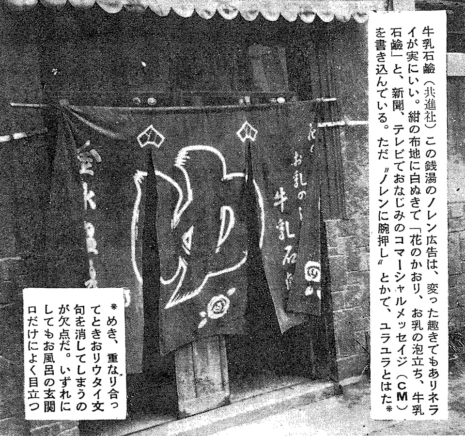 当社が制作を始めた昭和34年頃は、町中で一番人の集まる社交場といえばお風呂やさんでした。そこは情報交換の場であり、コミュニティ広場でもあり、そこに当社ののれんを掛けていただくことで当時の宣伝媒体としては抜群の効果を発揮しました。