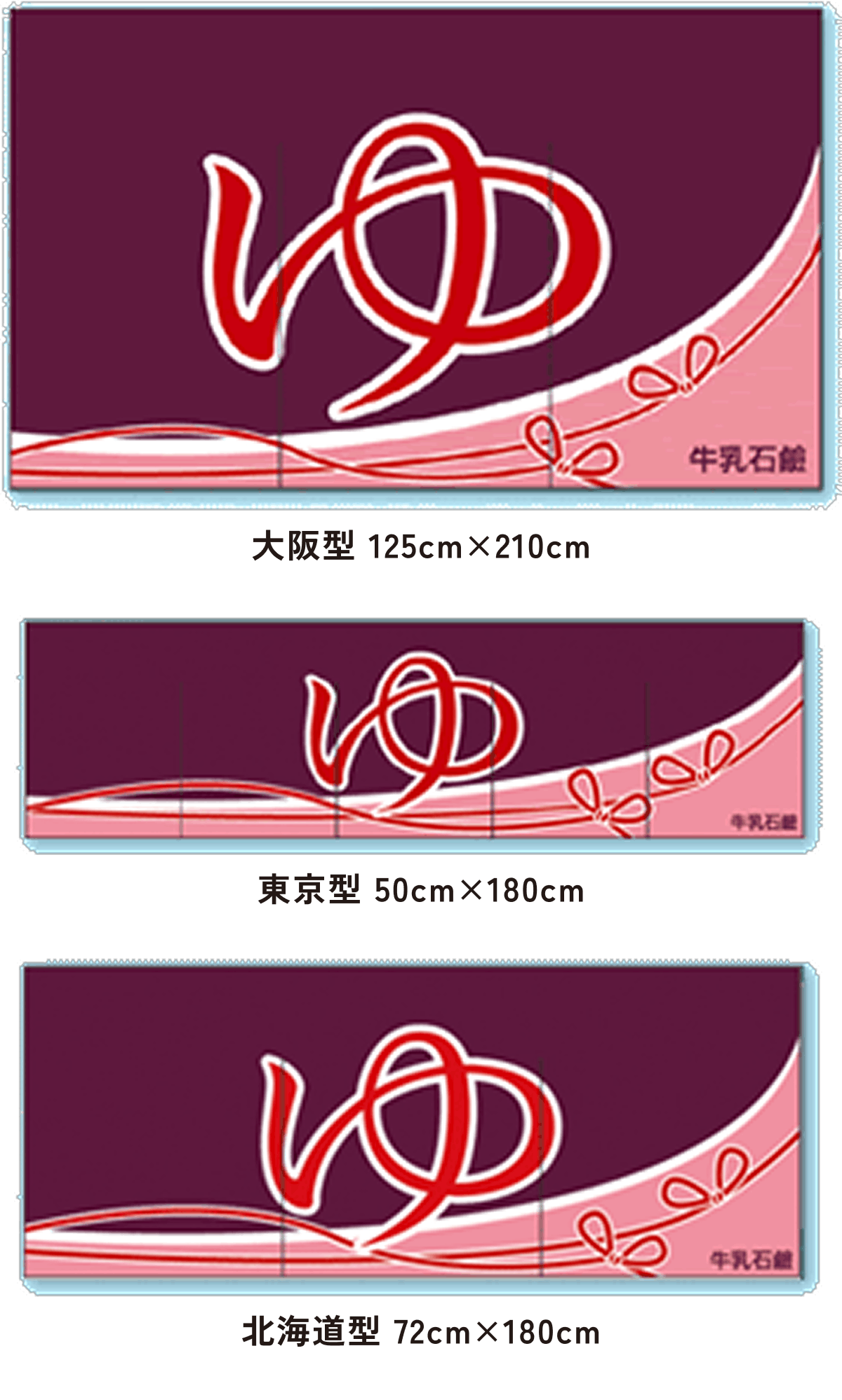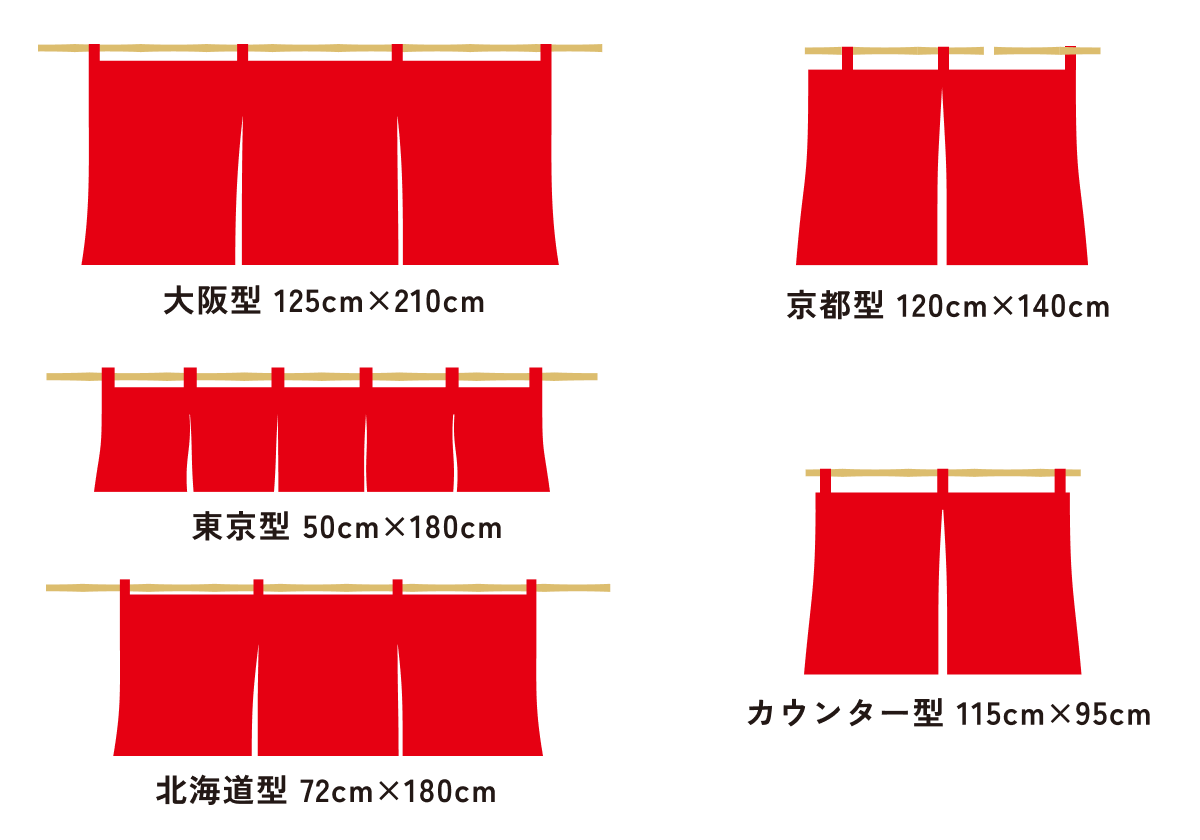 地域によって気質、風土がちがうように「のれん」のサイズも様々です。