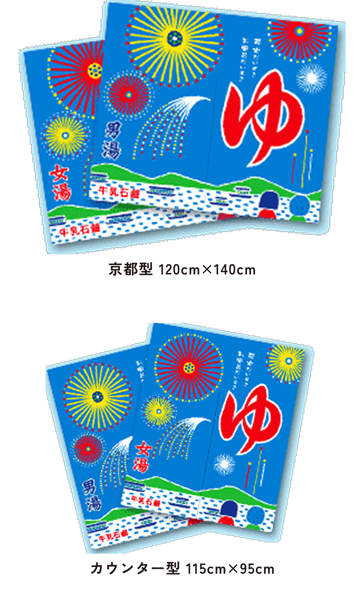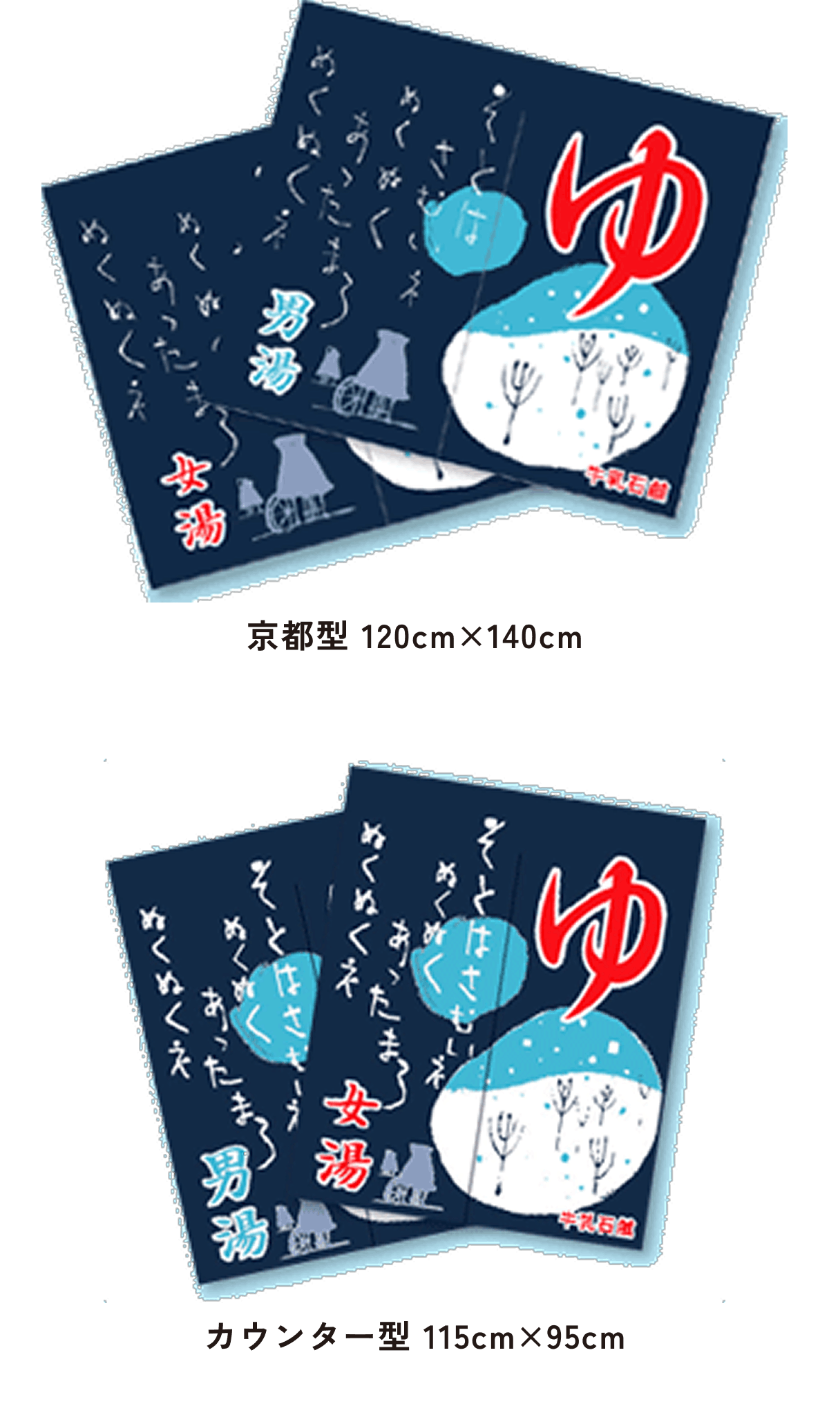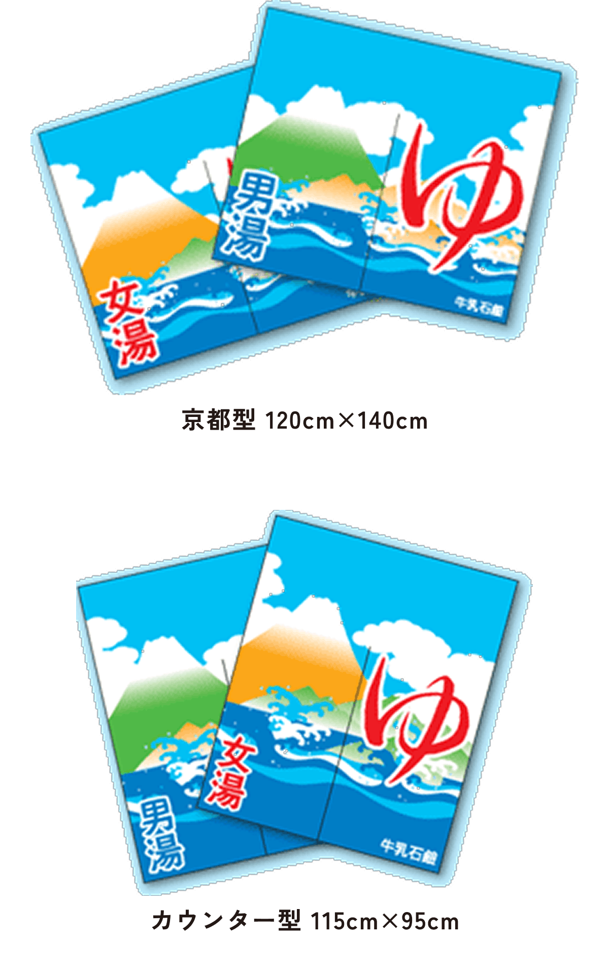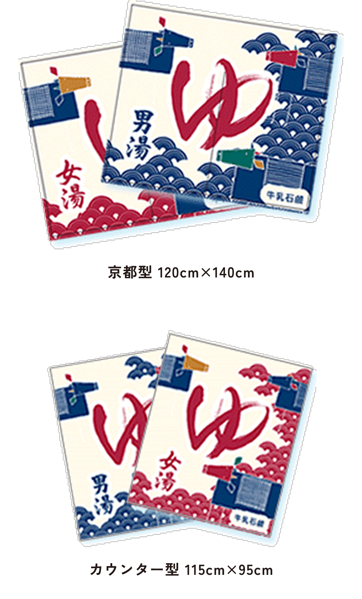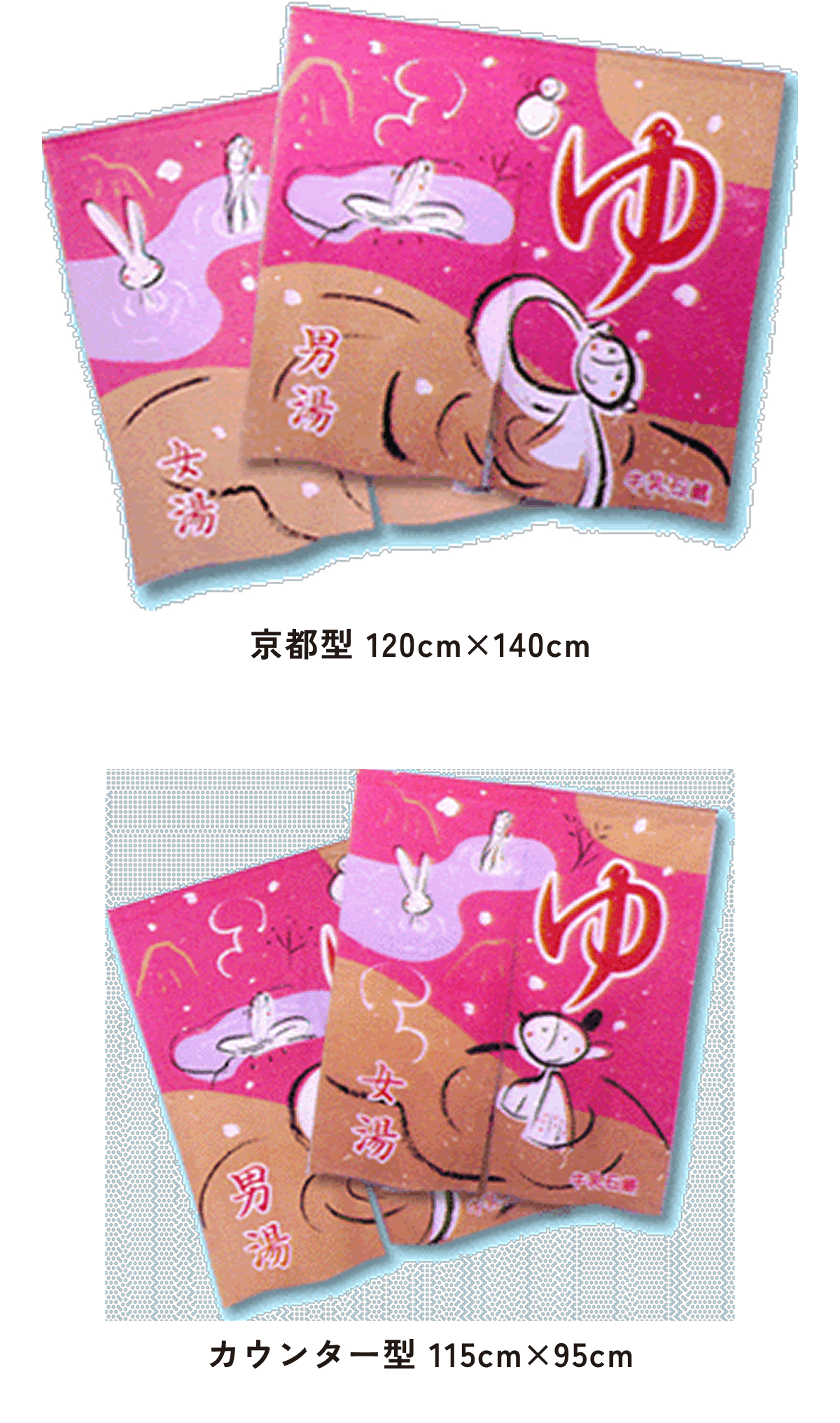 また、東京型は温泉シンボルのはいったものが多く、丈の短い横長タイプです。これは手でさっとはねあげるのを粋とする江戸っ子の美意識から生まれたようです。