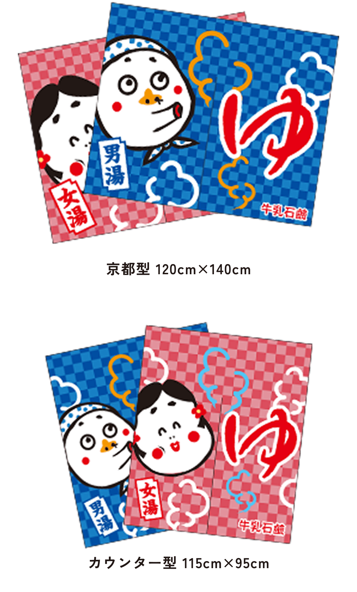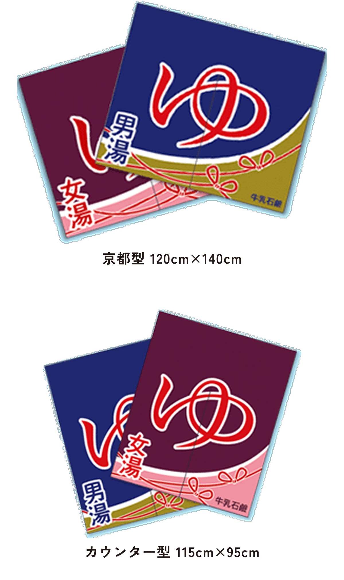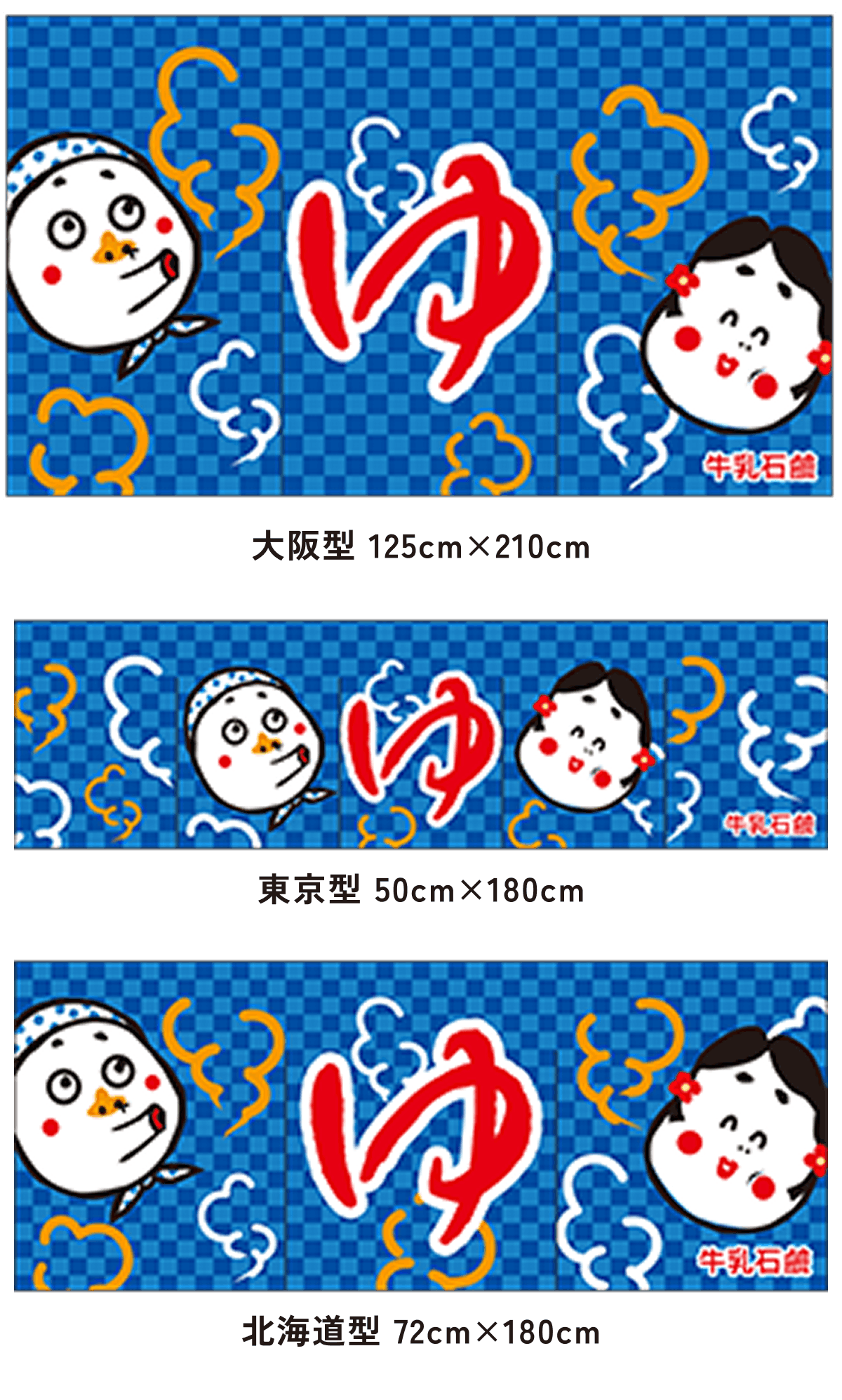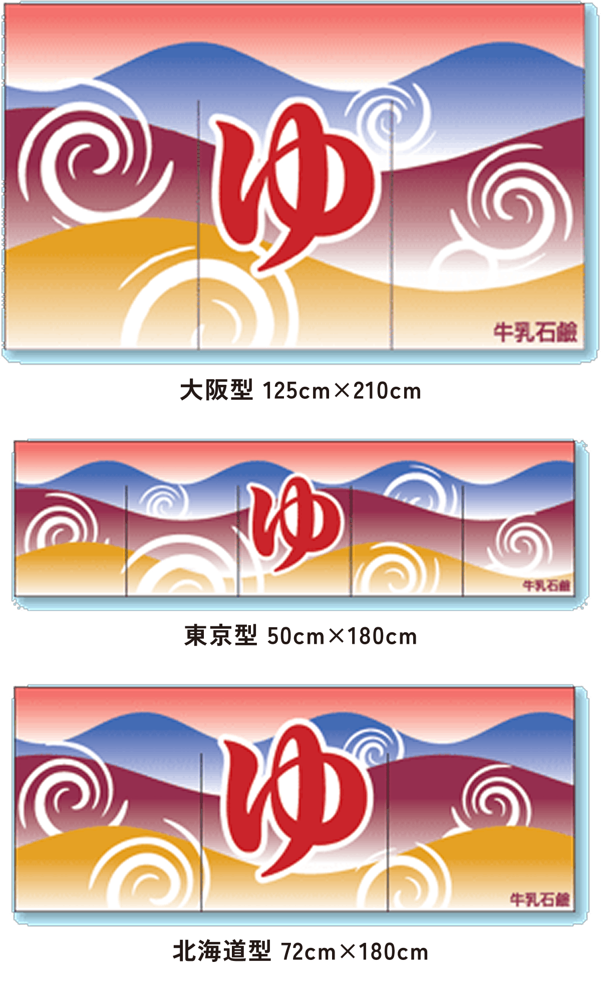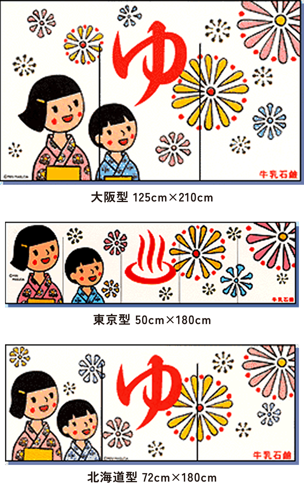 また、東京型は温泉シンボルのはいったものが多く、丈の短い横長タイプです。これは手でさっとはねあげるのを粋とする江戸っ子の美意識から生まれたようです。