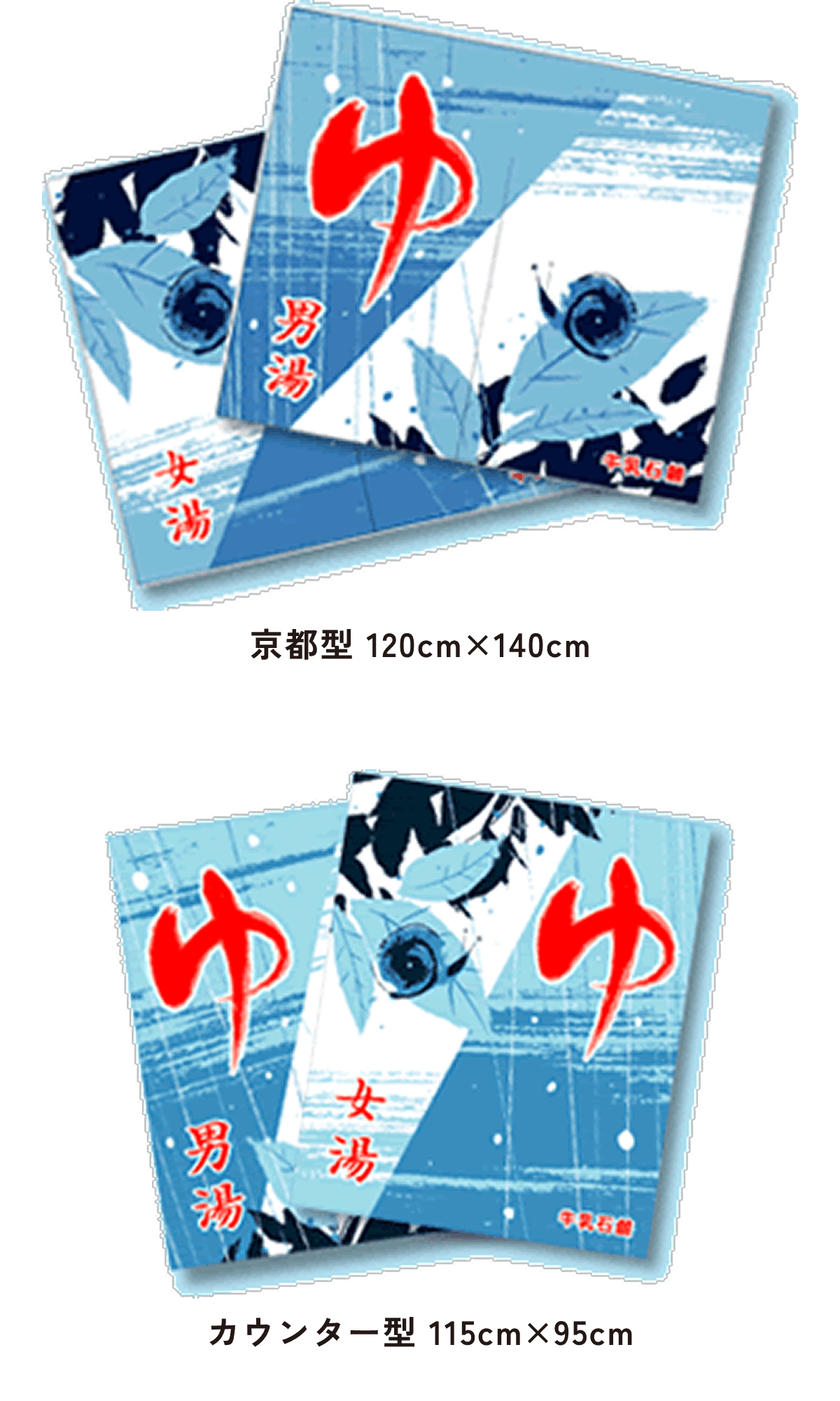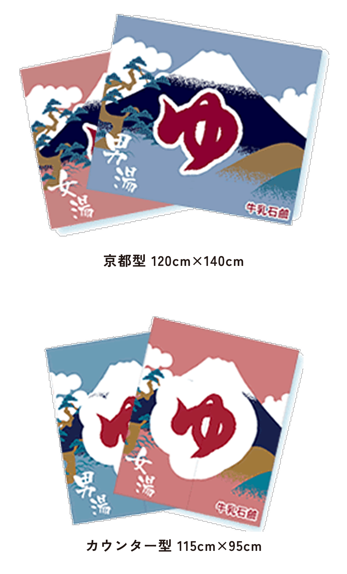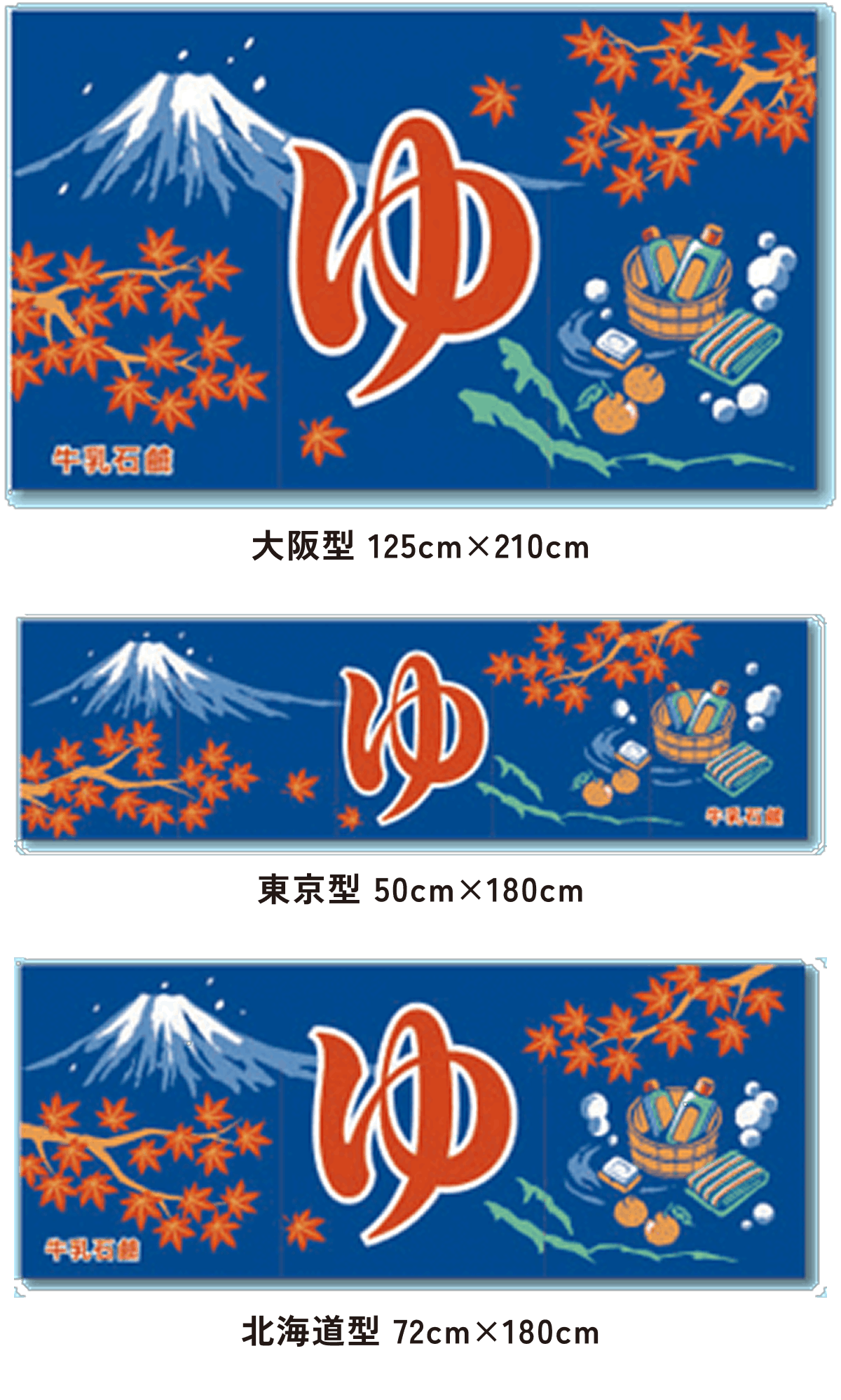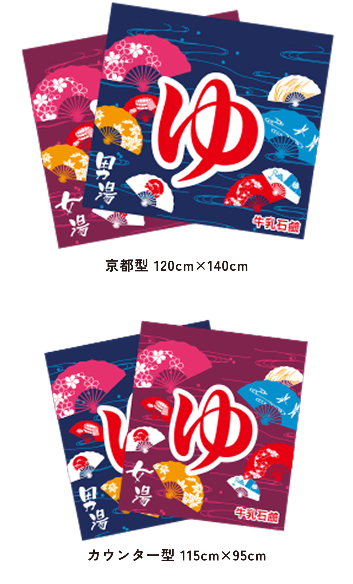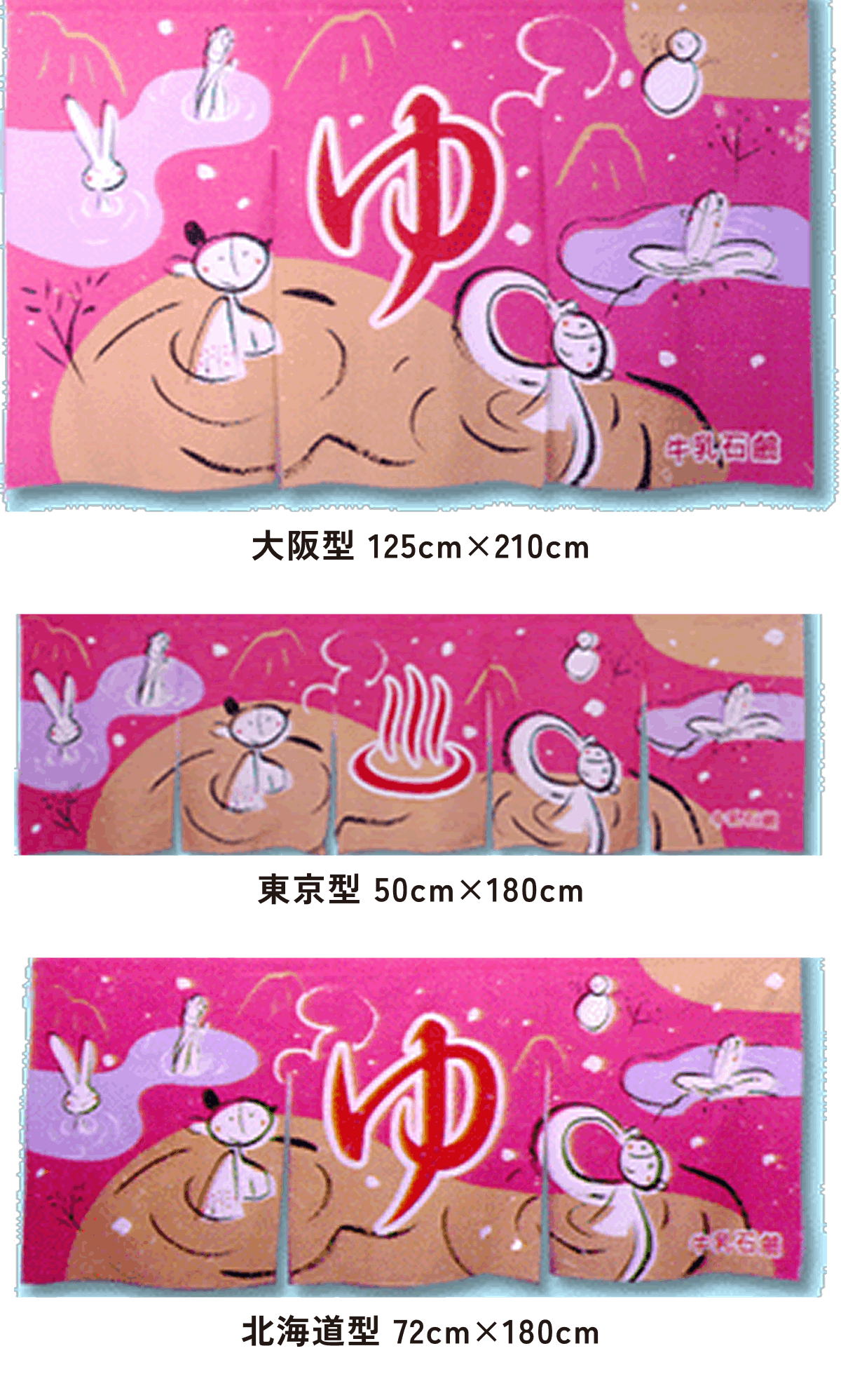 また、東京型は温泉シンボルのはいったものが多く、丈の短い横長タイプです。これは手でさっとはねあげるのを粋とする江戸っ子の美意識から生まれたようです。