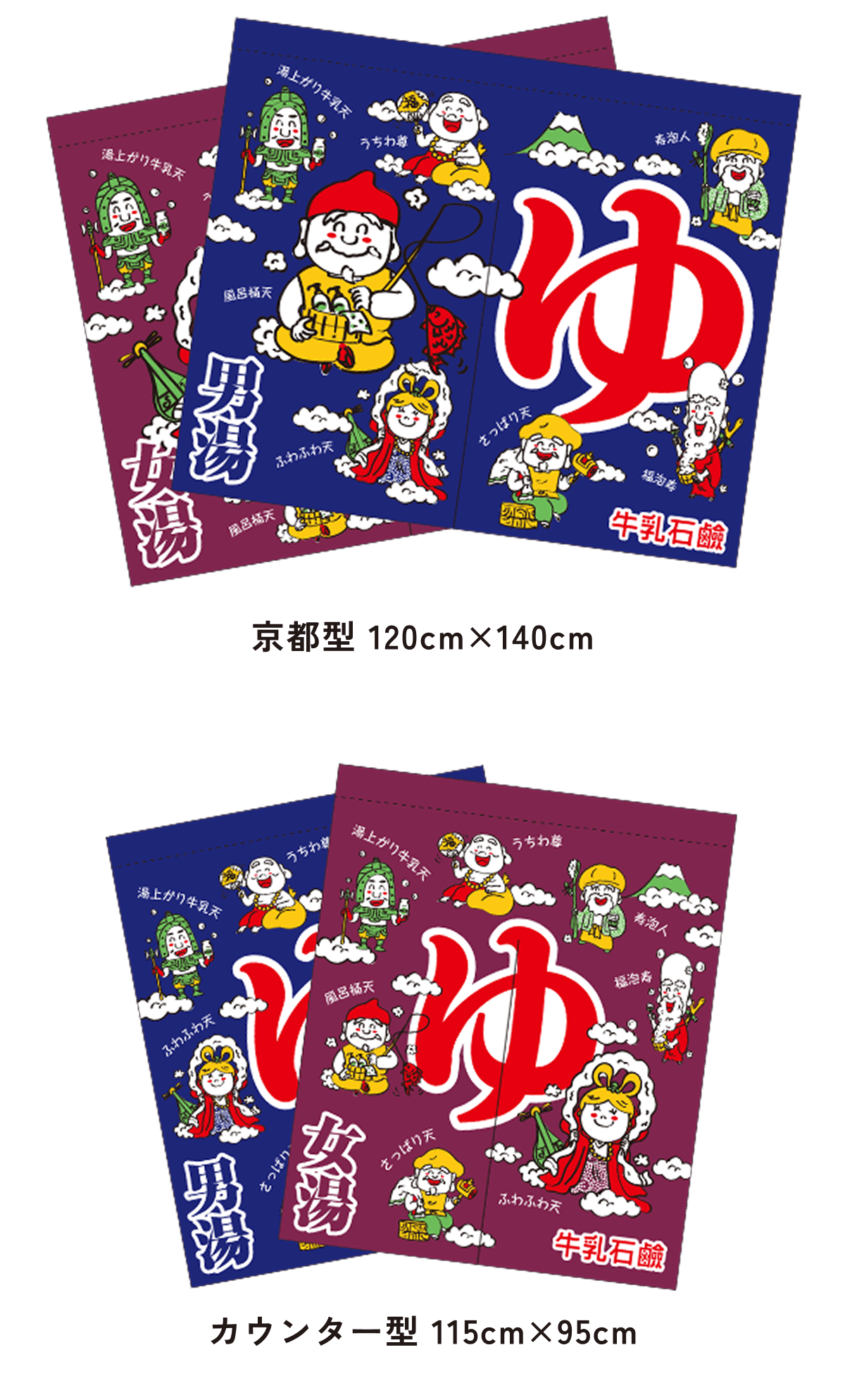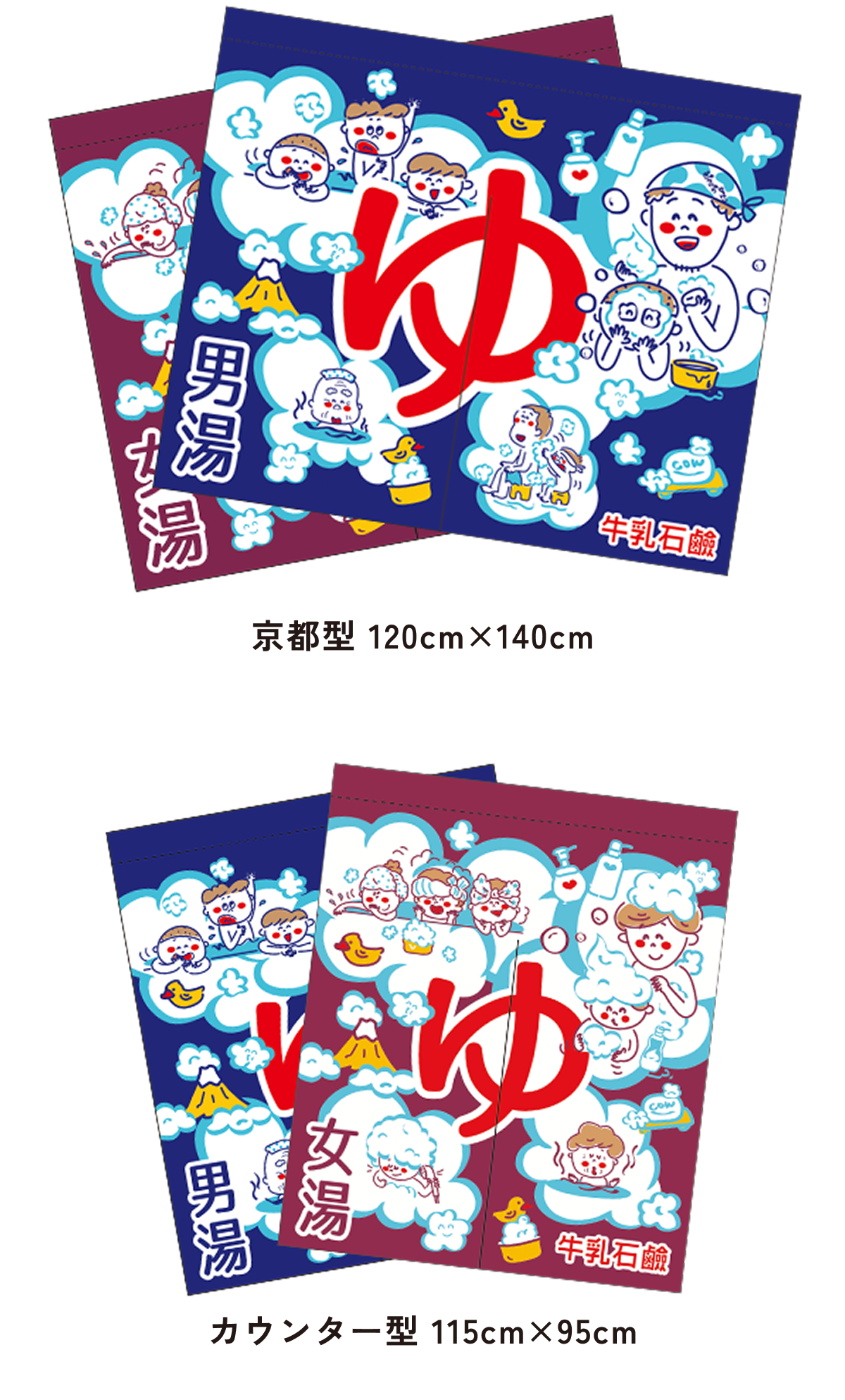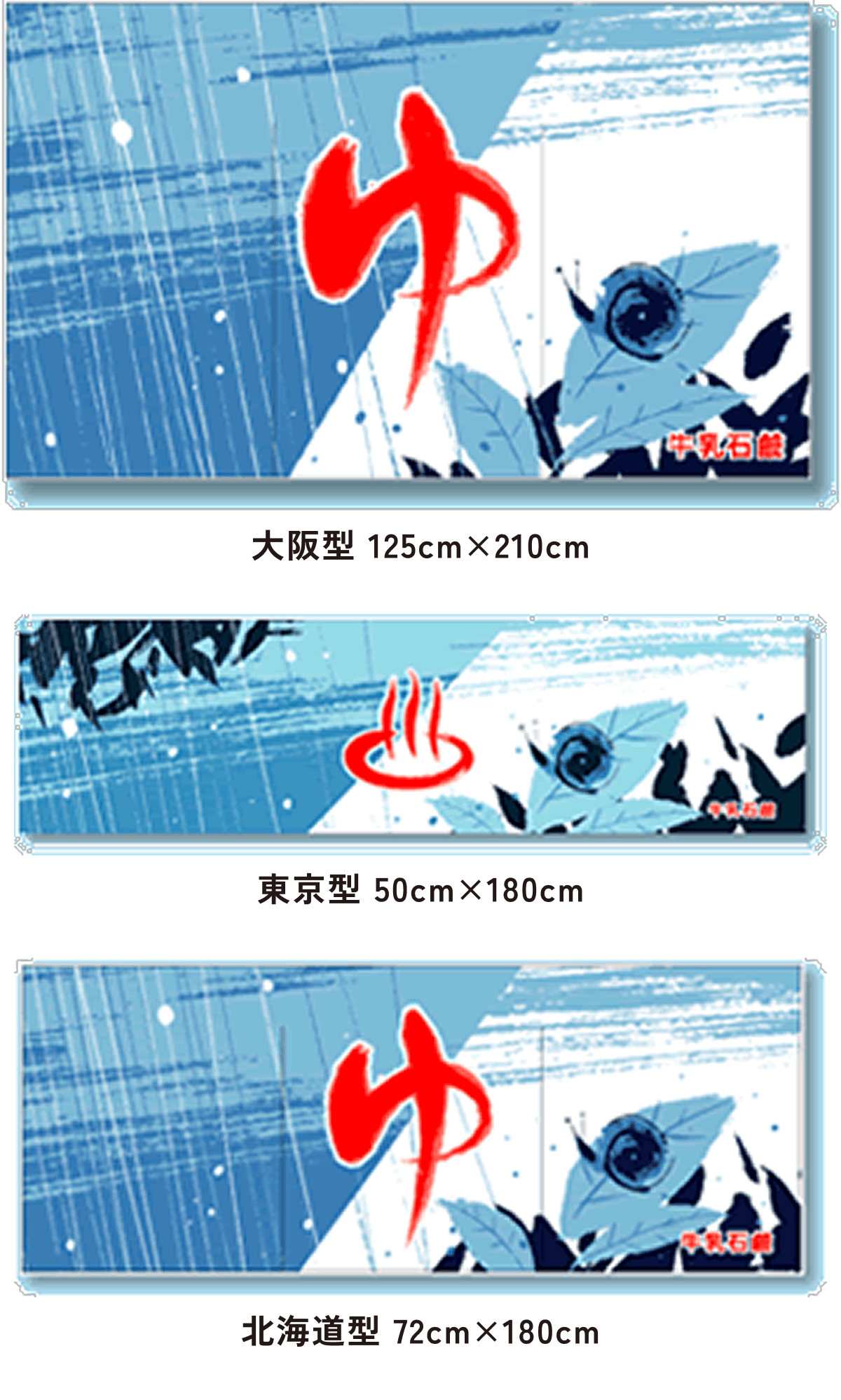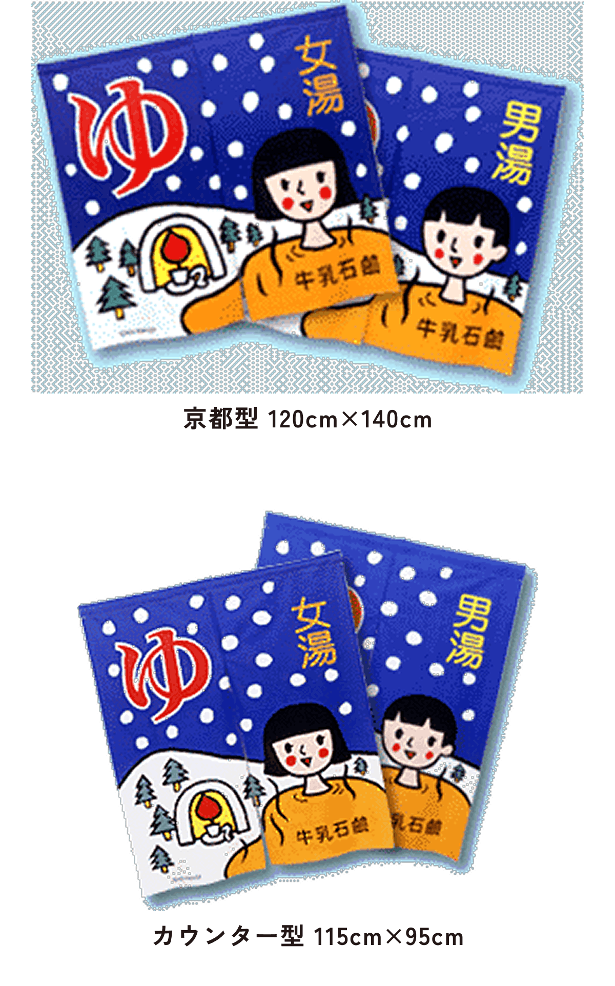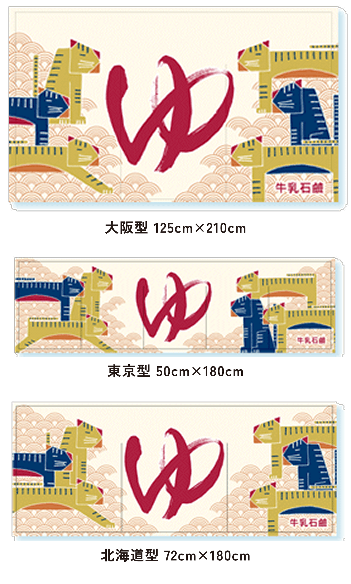 また、東京型は温泉シンボルのはいったものが多く、丈の短い横長タイプです。これは手でさっとはねあげるのを粋とする江戸っ子の美意識から生まれたようです。