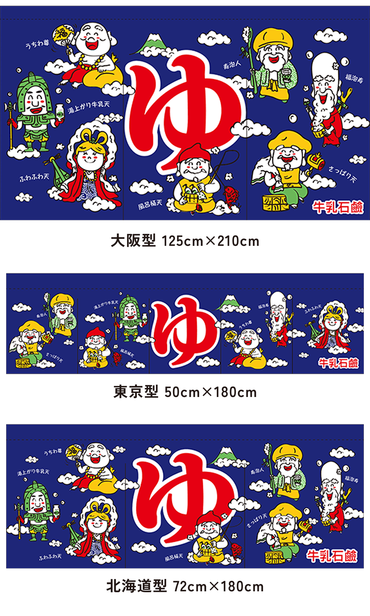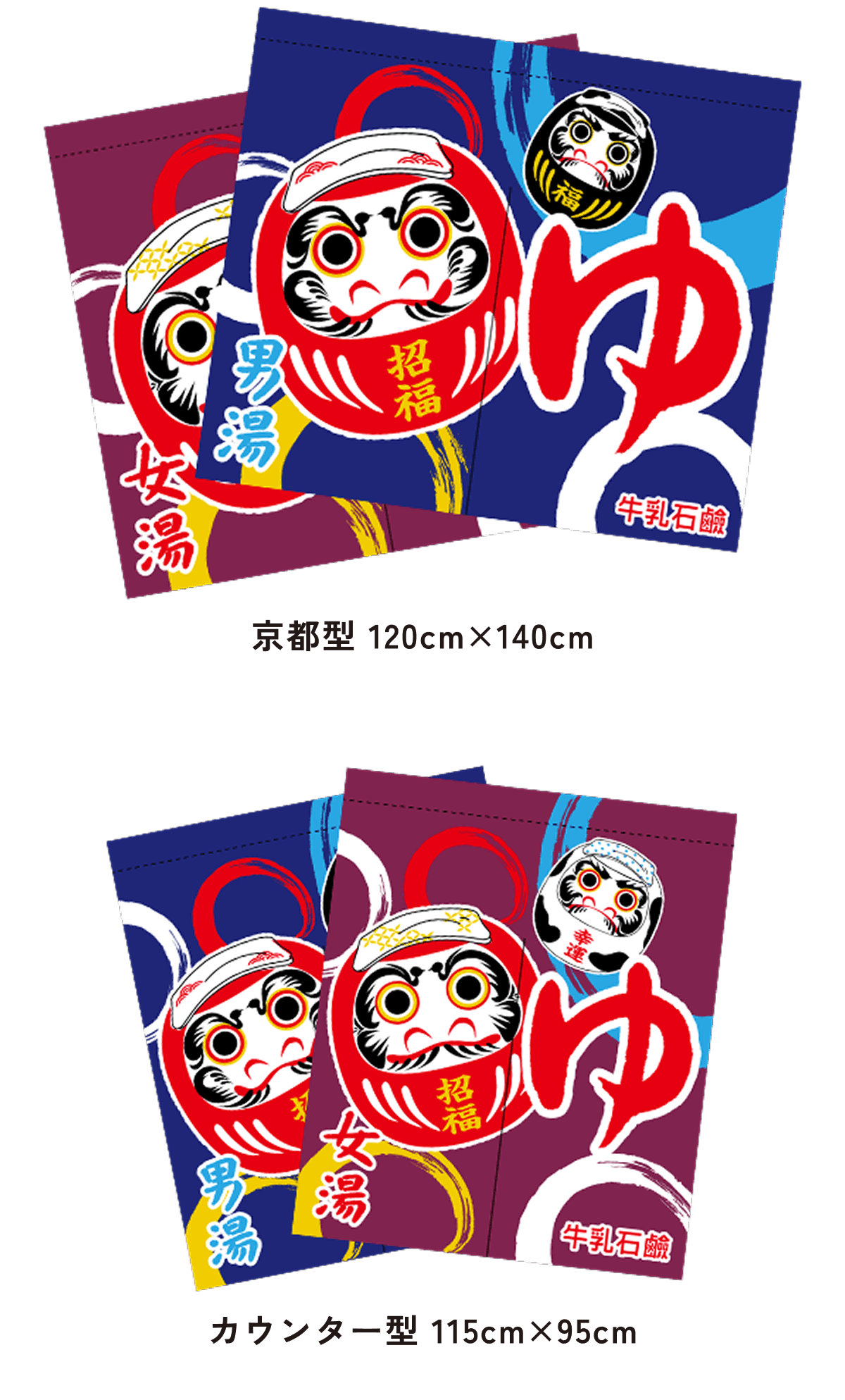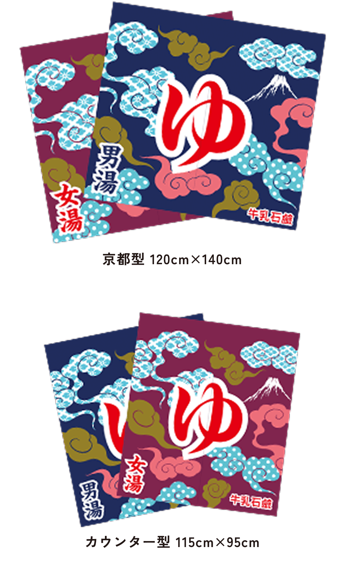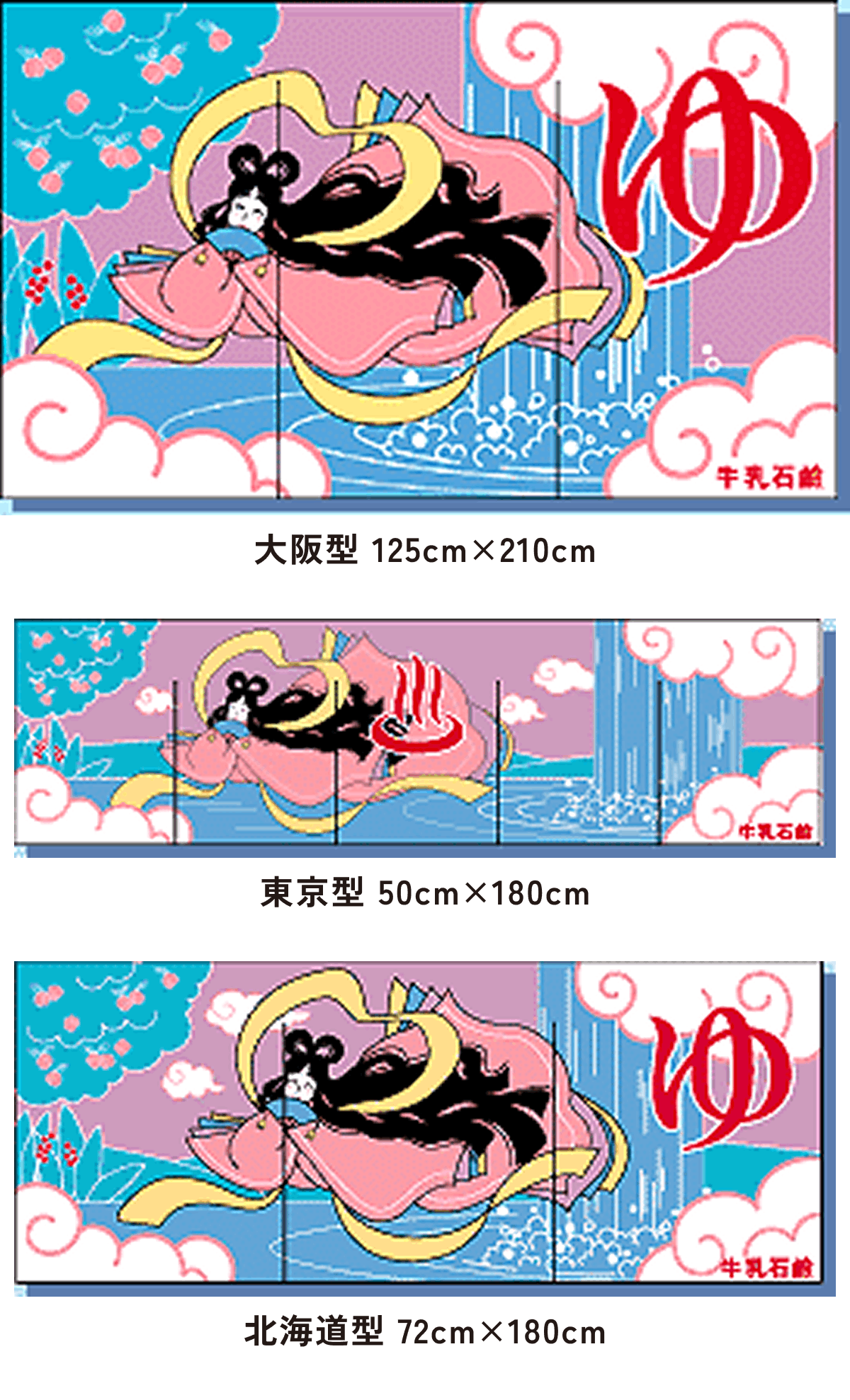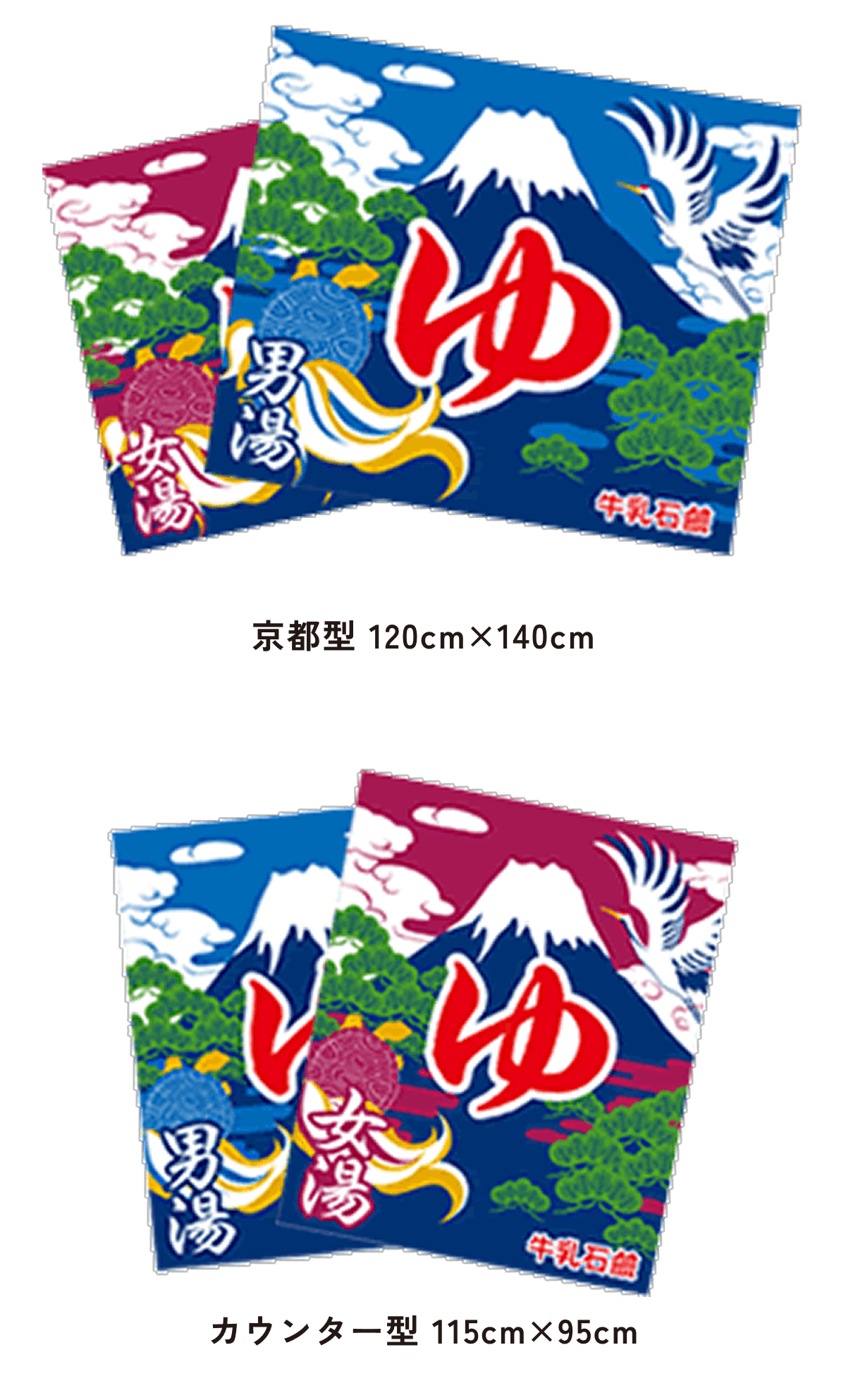 また、東京型は温泉シンボルのはいったものが多く、丈の短い横長タイプです。これは手でさっとはねあげるのを粋とする江戸っ子の美意識から生まれたようです。