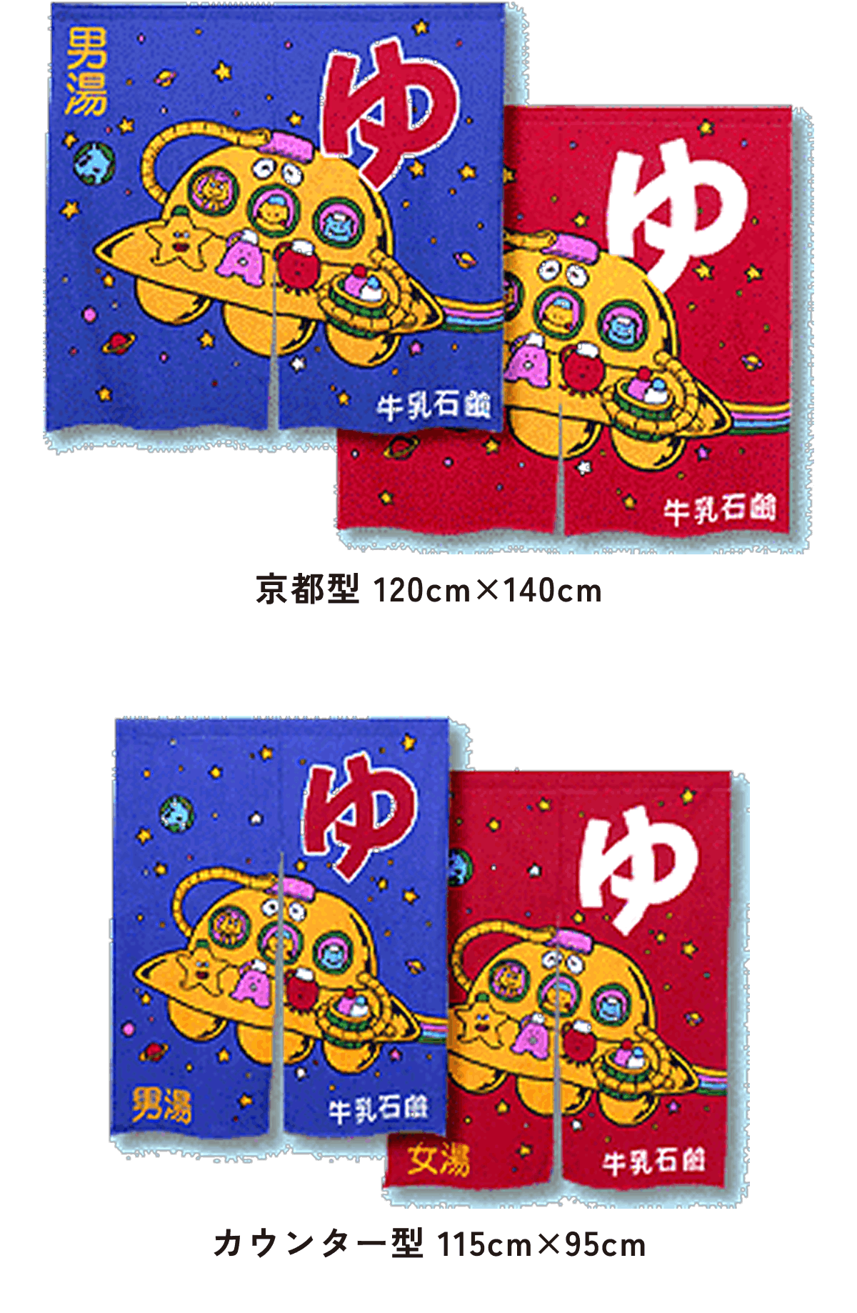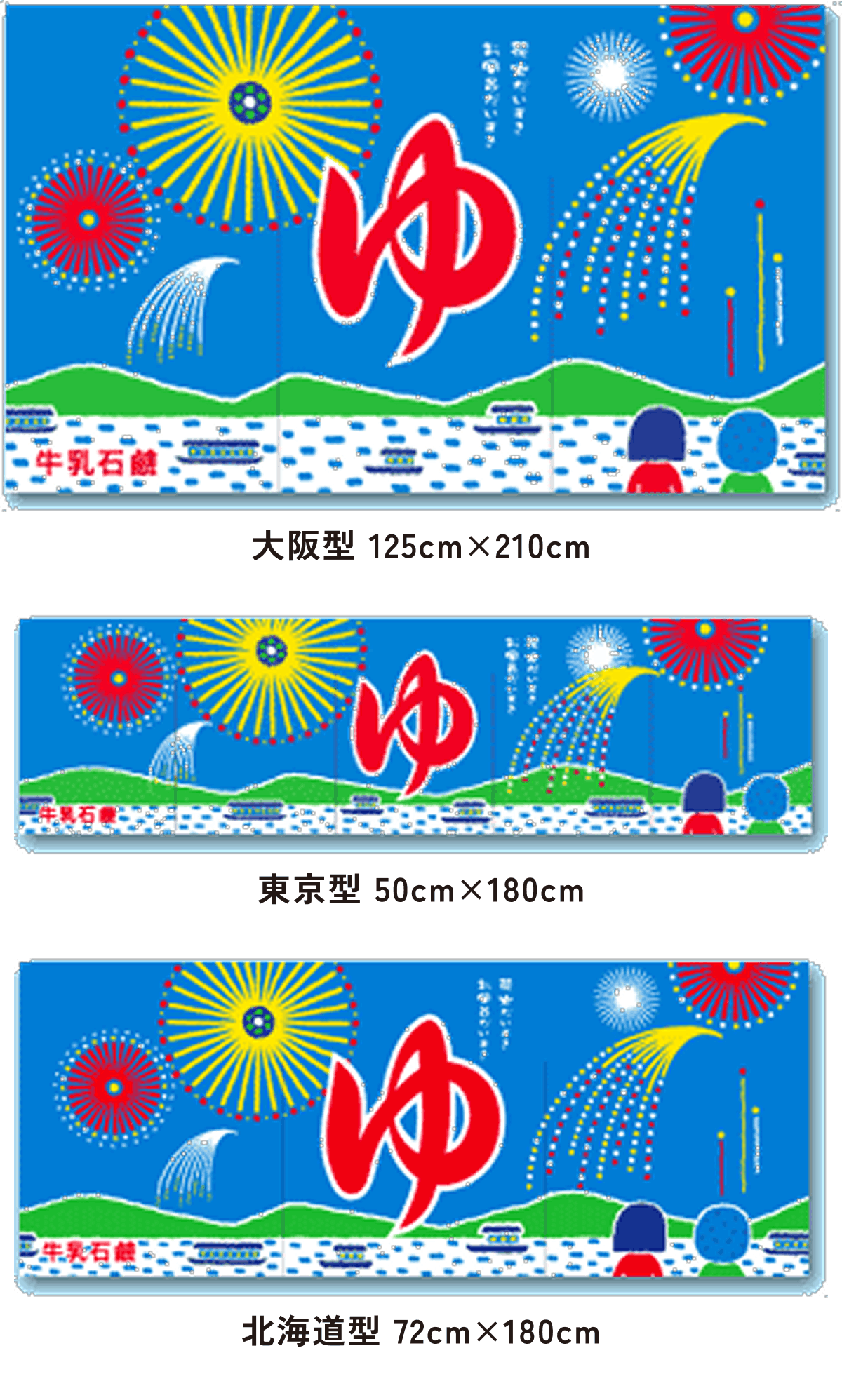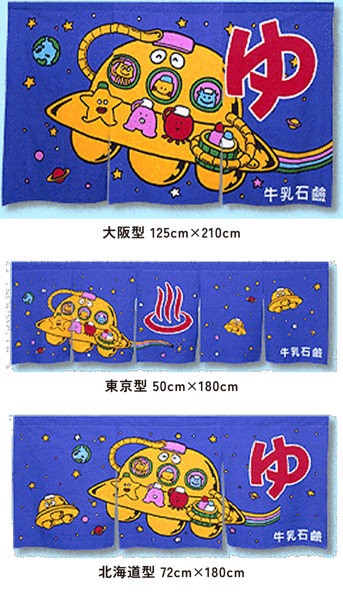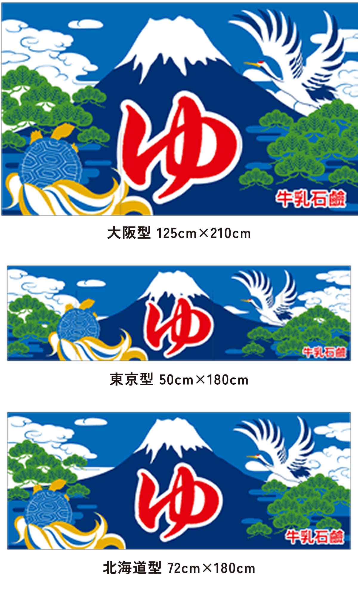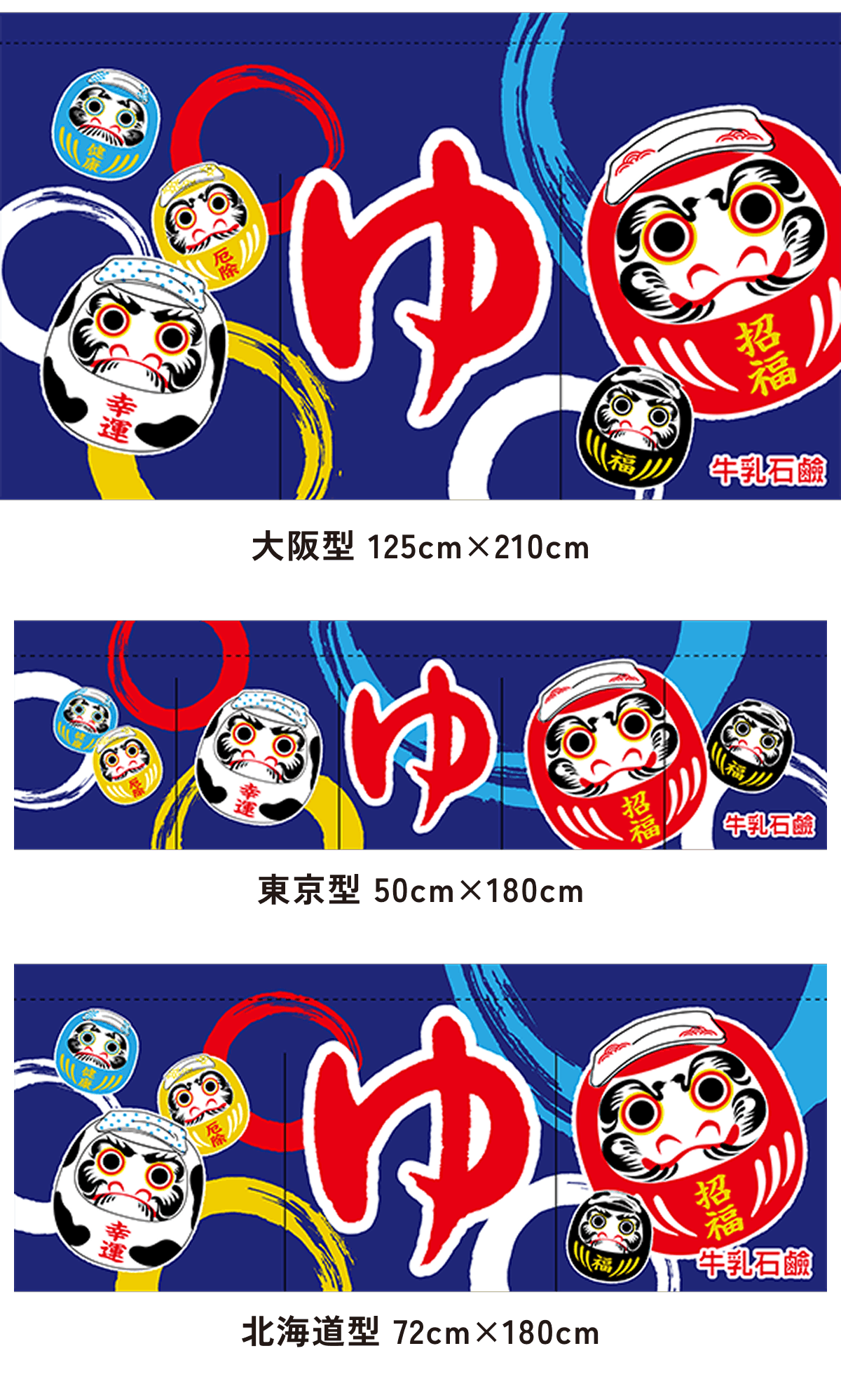 また、東京型は温泉シンボルのはいったものが多く、丈の短い横長タイプです。これは手でさっとはねあげるのを粋とする江戸っ子の美意識から生まれたようです。