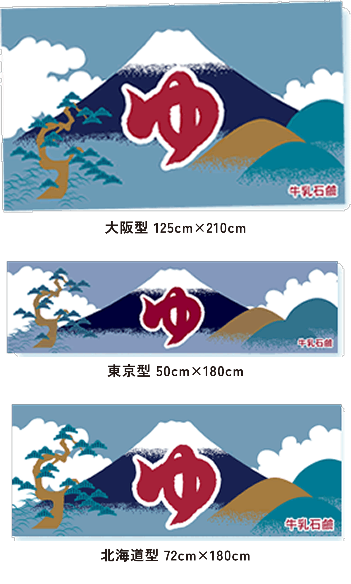 当社では近年、「北海道型」「東京型」「大阪型」「京都型」、そして郊外型銭湯向けには小型の「カウンター型」と5種類のサイズを製作しています。