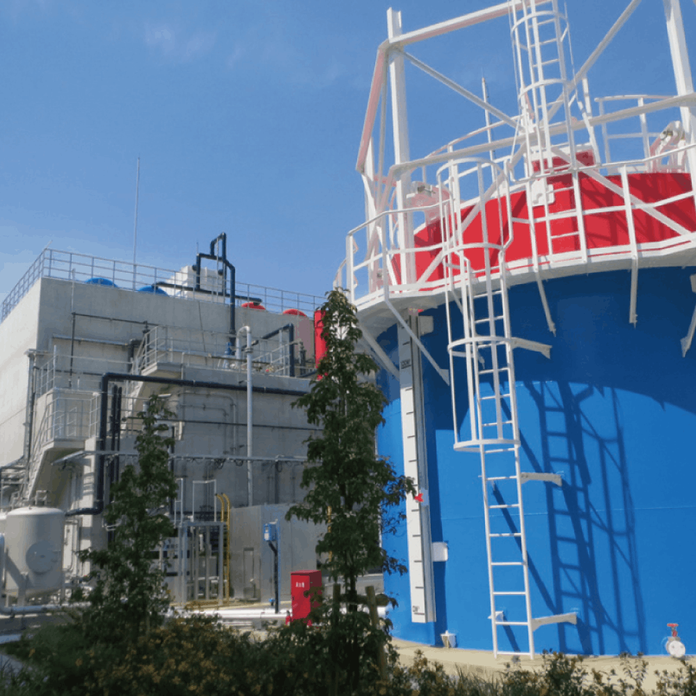 甘水エコロジープラントは、甘水をUASB(上向流嫌気性汚泥床)システムを用いて、下水放流可能な水質にするとともに、バイオガス(メタンガス)を生成し、ボイラの燃料として有効活用する「環境にやさしい」設備であり、2014年4月から本稼動を始めている。