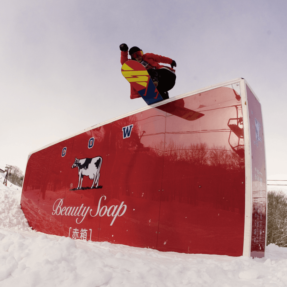 牛乳石鹸・赤箱ボックスでジビングをする岡本圭司選手