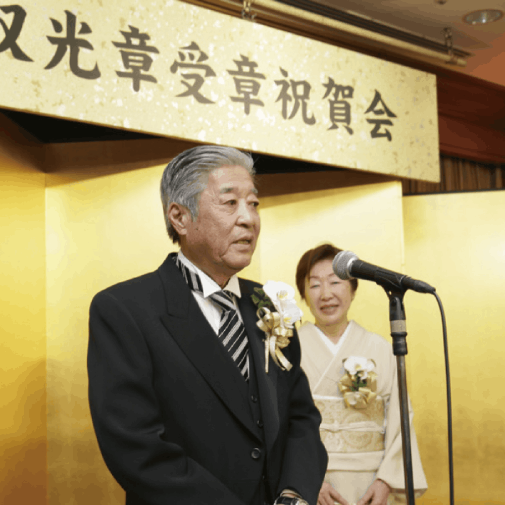 授与基準は、「社会の様々な分野における功績の内容に着目し、顕著な功績を挙げた者を表彰する場合に授与するもの」と定められている。宮崎会長の社業および業界の発展、社会活動における功績が認められた。