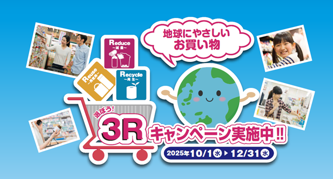 本取組はお客様一人ひとりが、お買物を通じて3R*や資源の大切さを認識・共感し、日頃の消費行動(商品選択)へ結びつけてもらうことを目的としたキャンペーンです。 9年目となる今年は、「リデュース」につながる省資源商品や「リサイクル」などに関連した商品などを中心に、全国のスーパー、ドラッグストア等、約18,000店舗でスタートします。
