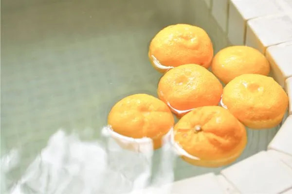 冬至は、湯につかって病気を治す湯治(とうじ)と言葉をかけています。ユズは融通(ゆうずう)が利くようにという願いが込められています。