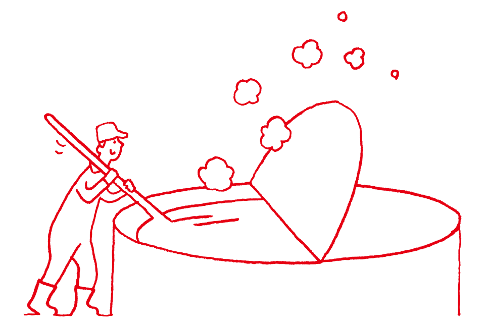 この方法は、熟練した職人さんが約1週間けん化釜の中の様子を見続けることで、良質なニートソープを熟成させ、つくりあげることができます。いわば「手作り」に近い製法で、多くの手間をかけておこなわれます。