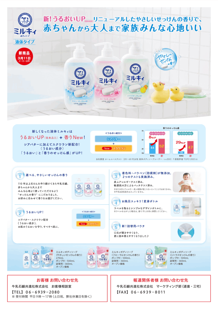 新しくなった「ミルキィボディソープ」シリーズを、これからもどうぞよろしくお願いいたします!