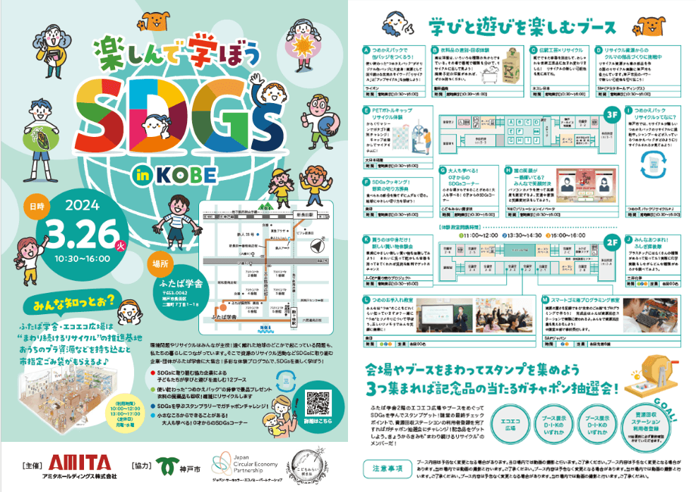 イベントは、子どもたちが多彩な体験プログラムを通しSDGsを楽しく学んでもらうことを目的としており、アミタホールディングス株式会社が主催しているものです。
