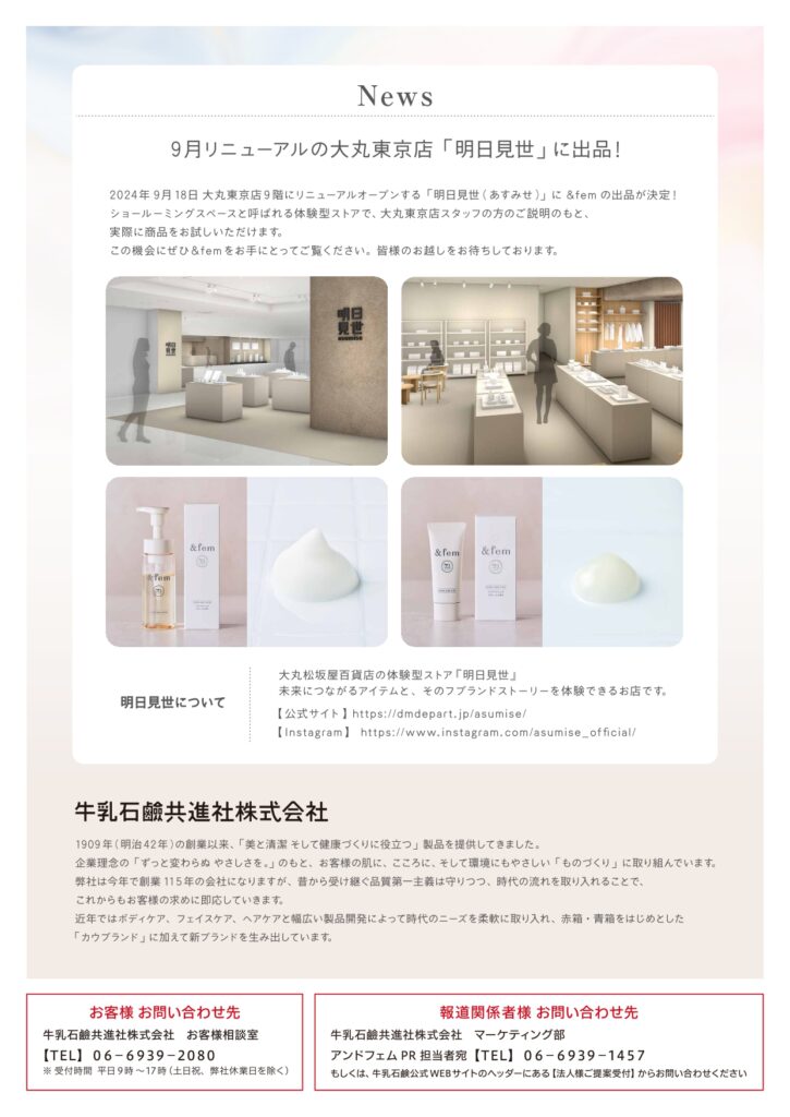 「&fem (アンドフエム)」が販路拡大