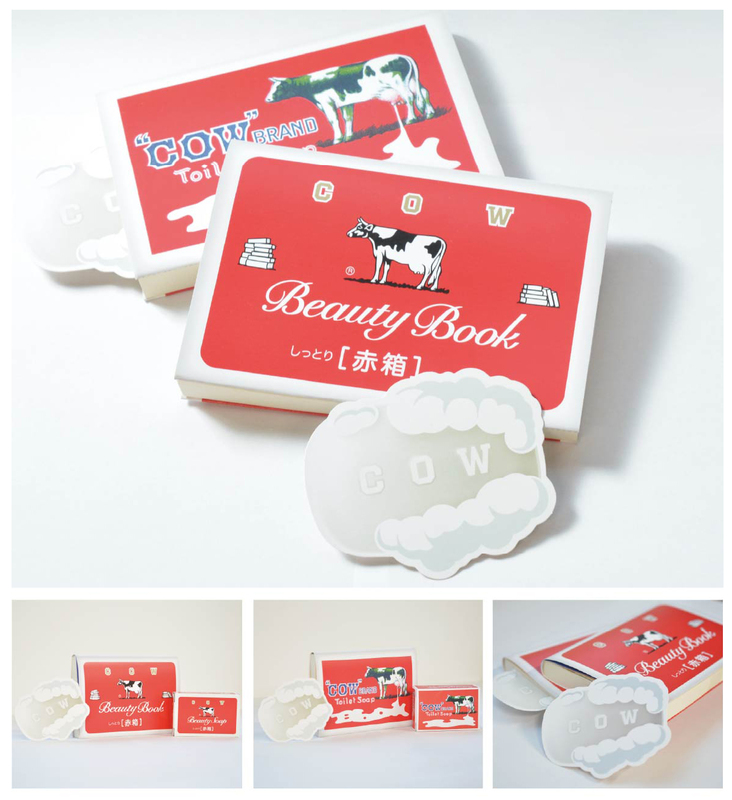 カウブランド赤箱(初代)のブックカバー&香り付き石けん型しおり(ローズ調の香り)