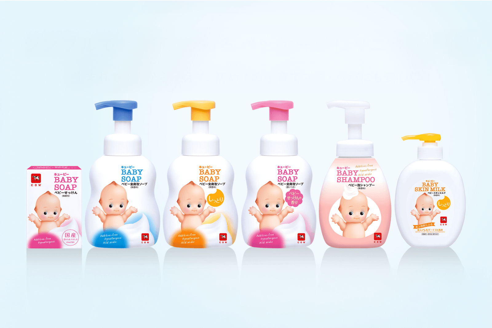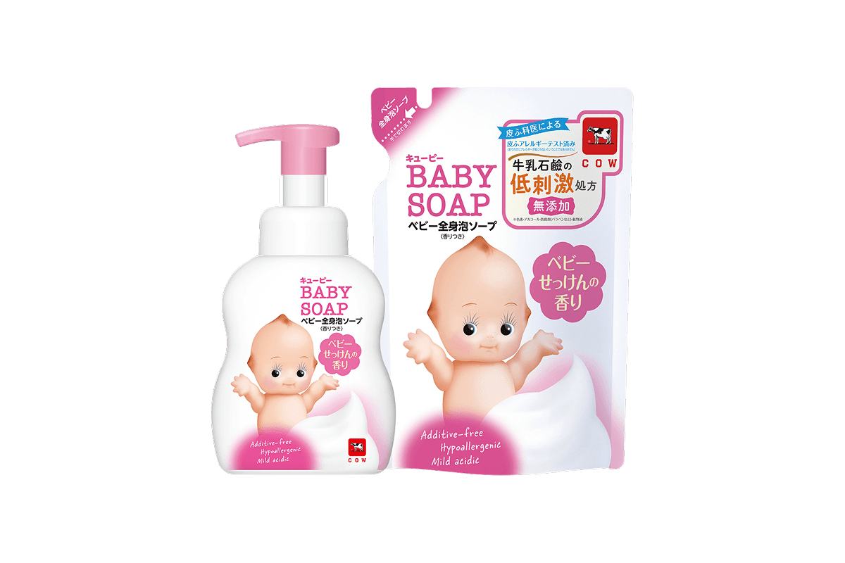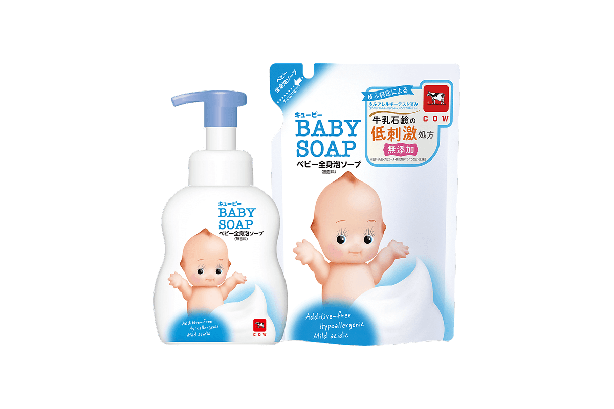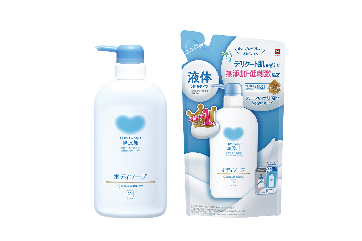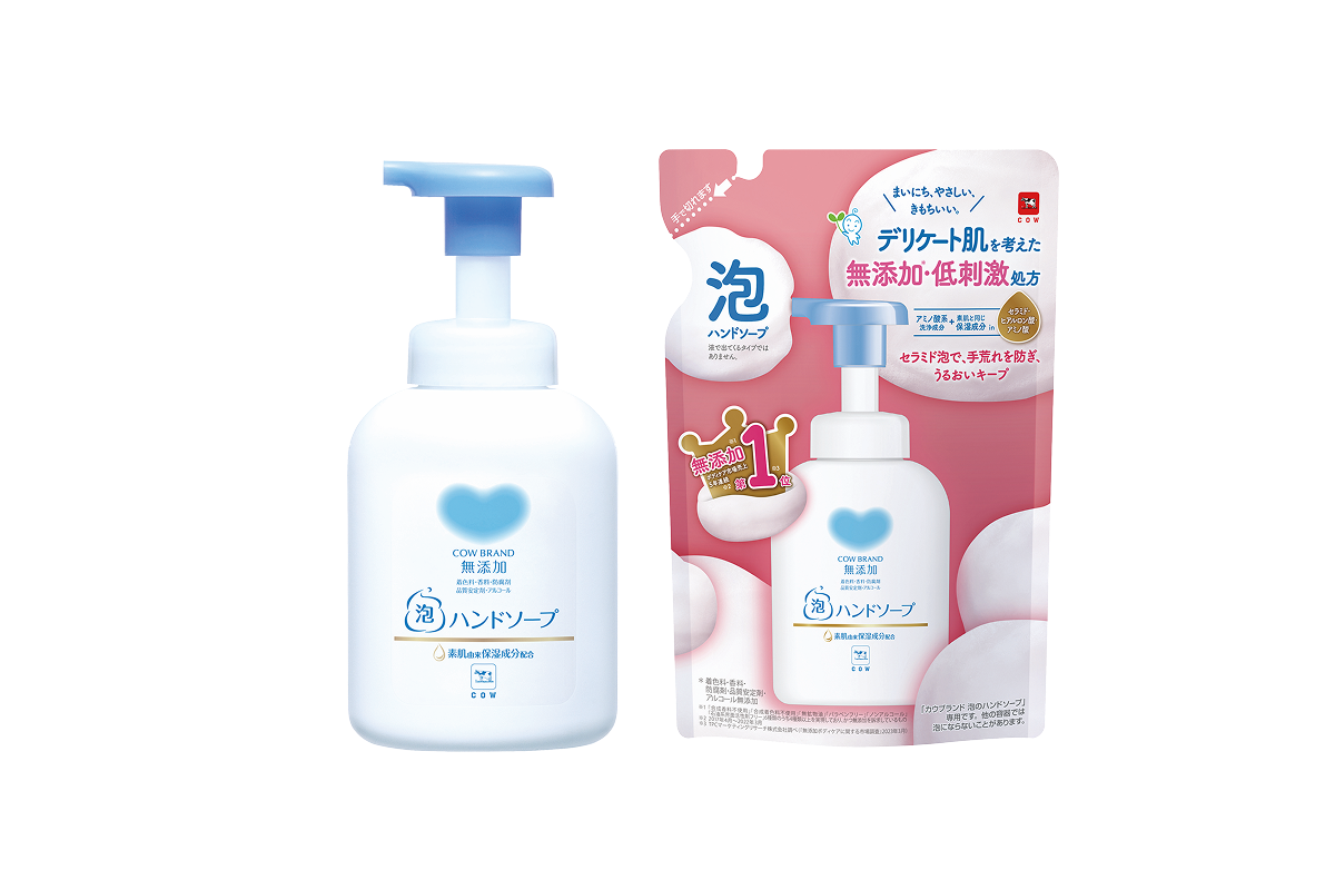 カウブランド無添加シリーズはデリケート肌にも刺激が少ないのはもちろんのこと、もっちりクッション泡に包まれて、うるおいしあわせな気分。