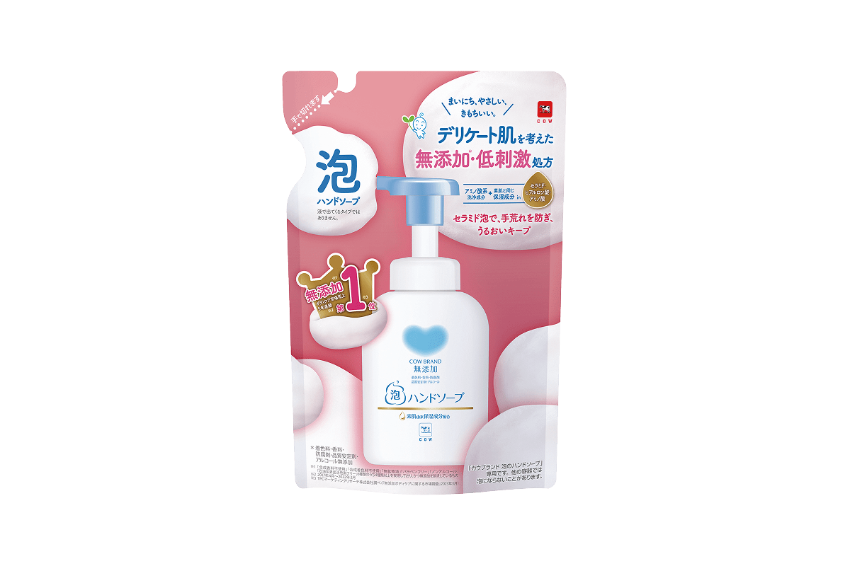 カウブランド無添加シリーズはデリケート肌にも刺激が少ないのはもちろんのこと、もっちりクッション泡に包まれて、うるおいしあわせな気分。