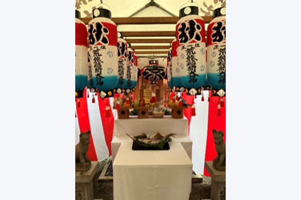 式典では社長をはじめ、全取締役と労働組合代表、各部門長が参加して、従業員の方々の安全・健康と社業の繁栄を祈念しています。