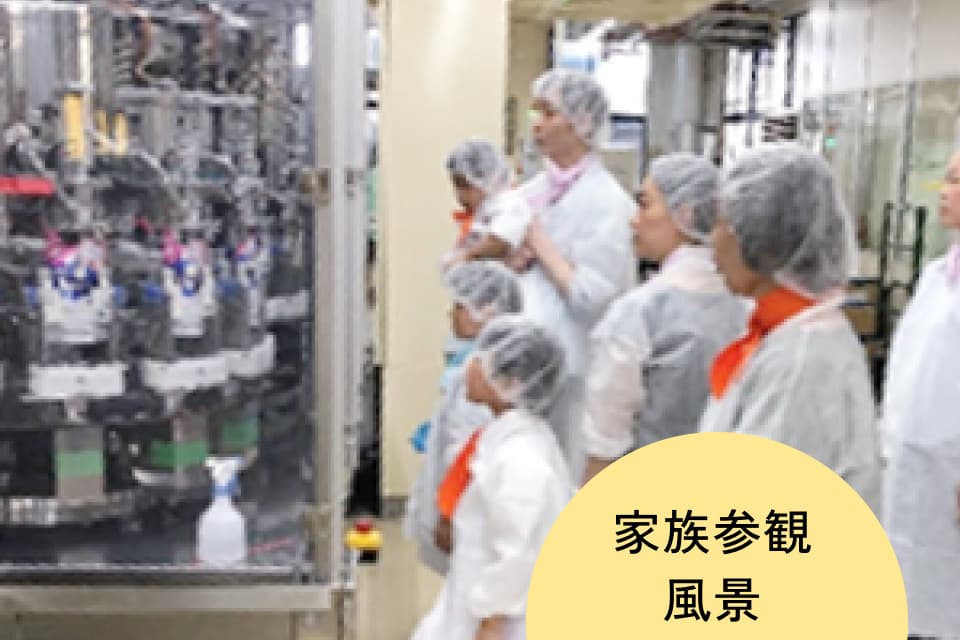 子どもたちの夏休みに合わせて「家族参観」をおこなっています。「家族参観」は、社員とその家族を確固とした牛乳石鹸のファンにしようとする取組みです。