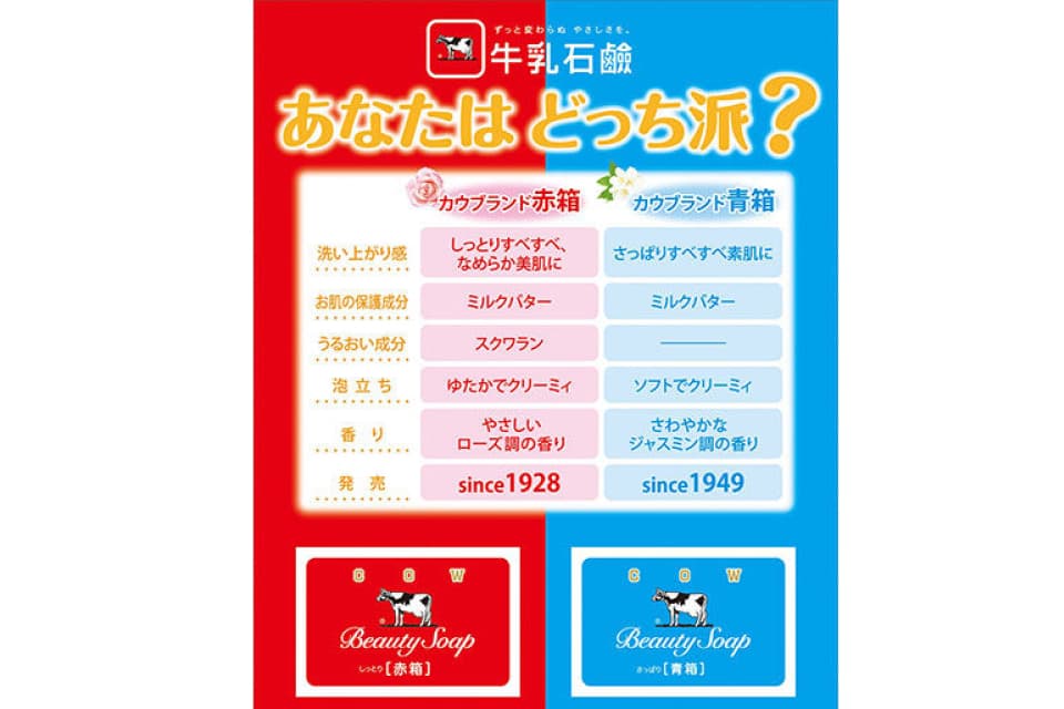 カウブランド赤箱が2019年度の@コスメ ベストアワードで殿堂入りになり、また、ESSE読者 流行大賞2019 洗浄部門において、金賞を受賞しました。これまでにも、カウブランド赤箱・青箱が2016年度のグッドデザインアワードで、「ロングデザイン賞」を戴いております。長年にわたり、広く多くのお客様からご支持を戴いたお陰だと感謝しております。 1928年(昭和3年)『牛乳石鹸』のブランドで赤箱を生産・発売したのが始まりです。1949年(昭和24年)にはブランド育成・全国展開を目指し、青箱を発売、ラインナップを拡大しました。 それ以来、変わらぬやさしさで多くのお客様とともに歩んでまいりました。